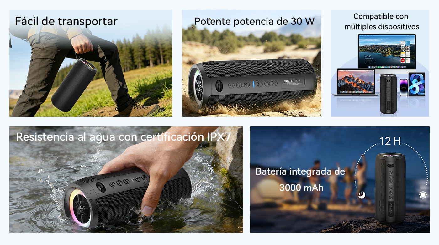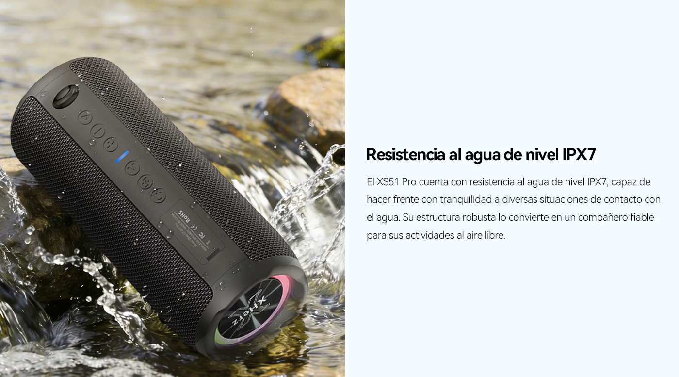 R: ¡Sí! El altavoz tiene una clasificación de impermeabilidad IPX7, lo que significa que puede sumergirse en agua a una profundidad de 1 metro durante 30 minutos, por lo que es seguro usarlo en la ducha, la piscina o en la playa.