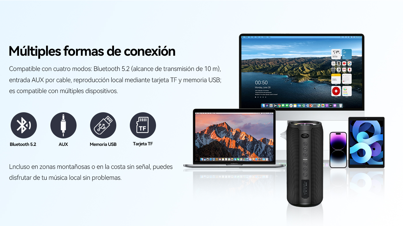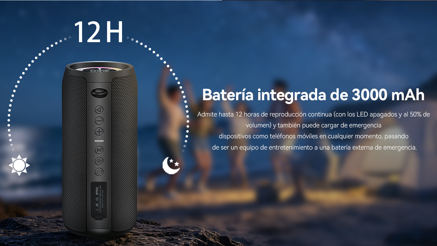 R: Con la luz LED apagada y el volumen al 50%, la duración de la reproducción puede alcanzar hasta 14 horas. El tiempo de duración real puede variar según el volumen y el entorno de uso.